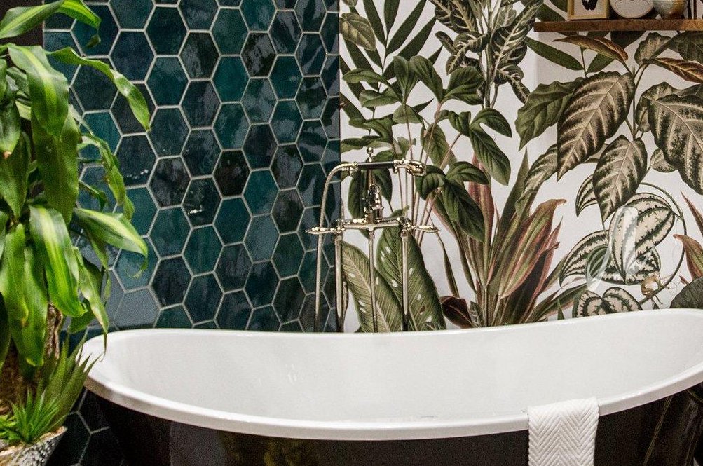 Gạch lục giác 3D lá cọ mix trơn 14x16 nâu chấm